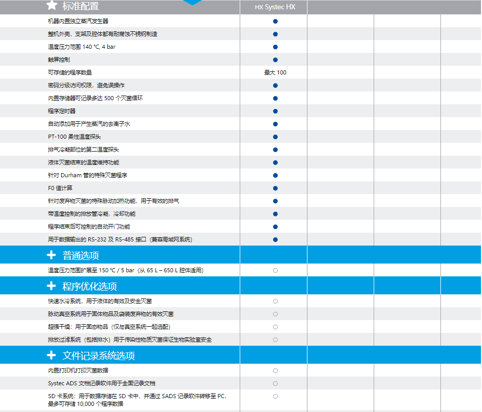 有 16 種尺寸可供選擇,腔體容積從 65 L 到 1580 L。所有的功能選項都可以在這個型號上加裝,不僅擁有較大容量的裝載空間,此型號的滅菌器擁有十分緊湊的體積和非常輕的重量。