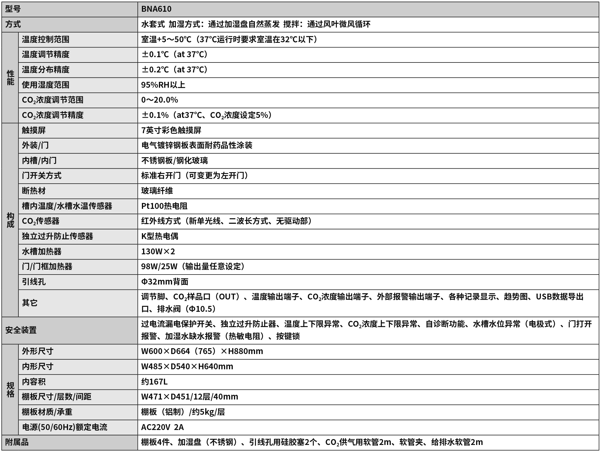 BNA610水套式二氧化碳培養箱